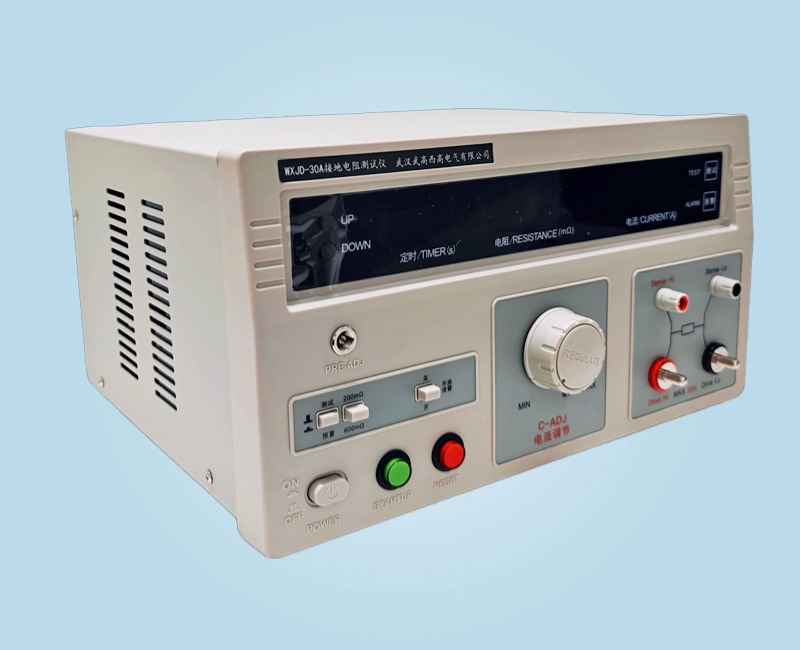 WXJD-30A 接地電阻測試適用于測量各種電機、電器、儀器儀表、家用電器等設備的保護接地端和可觸及的金屬殼體之間的電阻值。它具有測量準確,操作方便等優點。符合 GB4706.1《家用和類似用途電器的安全通用要求》和GB9706.1《醫用電氣設備安全通用要求》等國家標準中相關條款的試驗要求所需的測試設備。